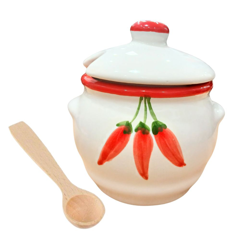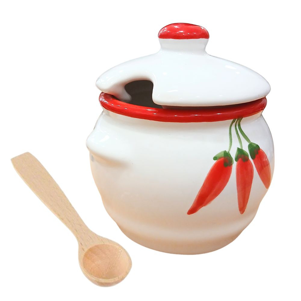 Kerámia paprikás fűszertartó, fűszerkanállal.
